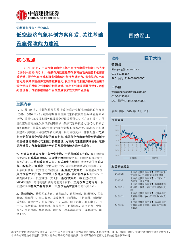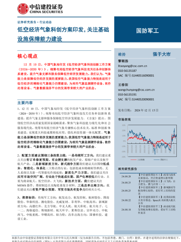 【中信建投证券】【20241215】国防军工行业:低空经济气象科创方案印发,关注基础设施保障能力建设-25页
