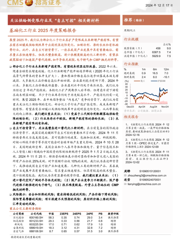 【海通证券】【20241217】基础化工行业2025年度策略报告:关注供给侧受限行业及“自主可控”相关新材料-51页