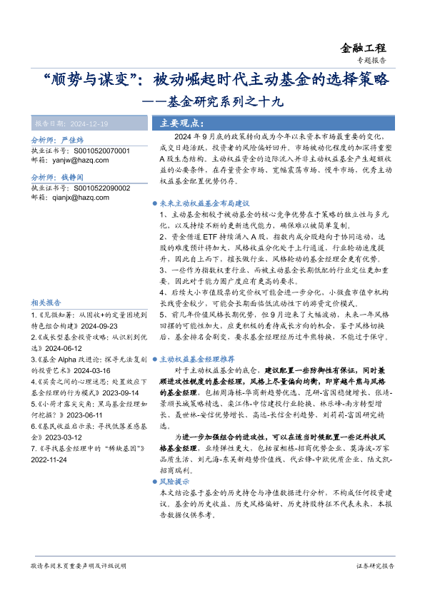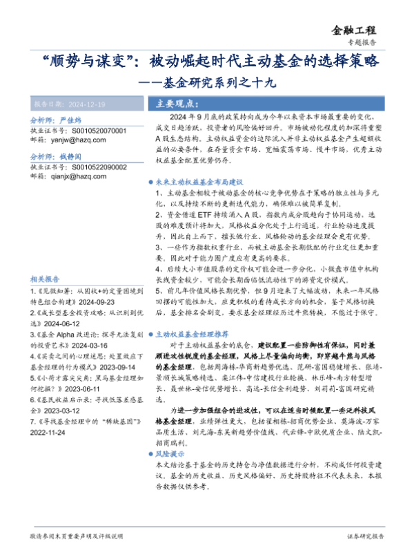 【华安证券】【20241219】“顺势与谋变”:被动崛起时代主动基金的选择策略-29页