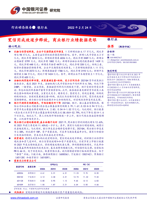 【银河证券】【20220224】银行业:宽信用成效逐步释放,商业银行业绩数据亮眼-21页