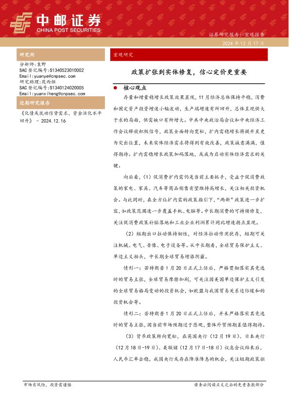 【中邮证券】【20241217】宏观研究:政策扩张到实体修复,信心定价更重要-12页