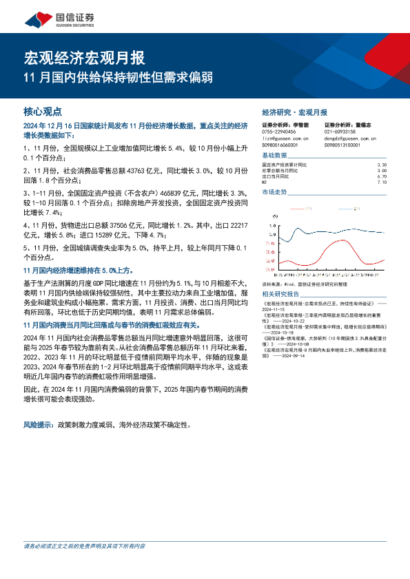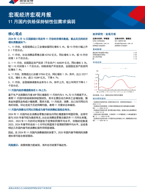【国信证券】【20241216】宏观经济宏观月报:11月国内供给保持韧性但需求偏弱-18页