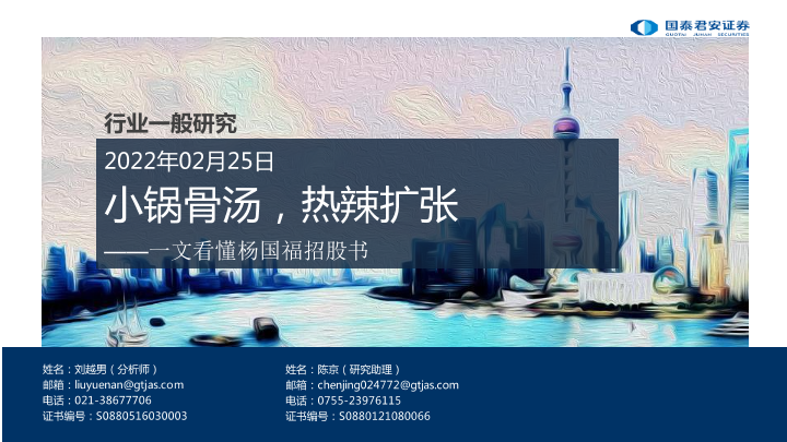 【国泰君安证券】【20220225】零售行业:一文看懂杨国福招股书,小锅骨汤,热辣扩张-28页