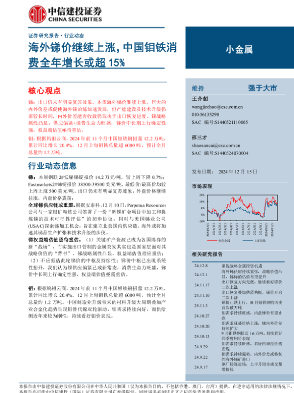 【中信建投证券】【20241215】小金属行业:海外锑价继续上涨,中国钼铁消费全年增长或超15%-10页