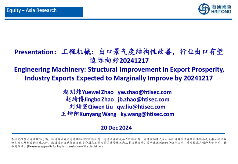 【海通国际】【20241217】工程机械:出口景气度结构性改善,行业出口有望边际向好-45页
