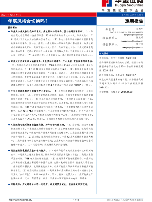 【华金证券】【20241214】年底风格会切换吗?-18页