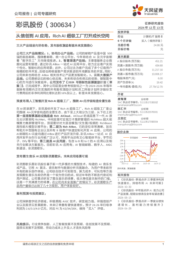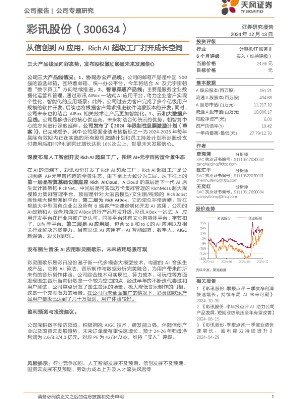 【天风证券】【20241213】彩讯股份(300634)从信创到AI应用,Rich+AI超级工厂打开成长空间-14页