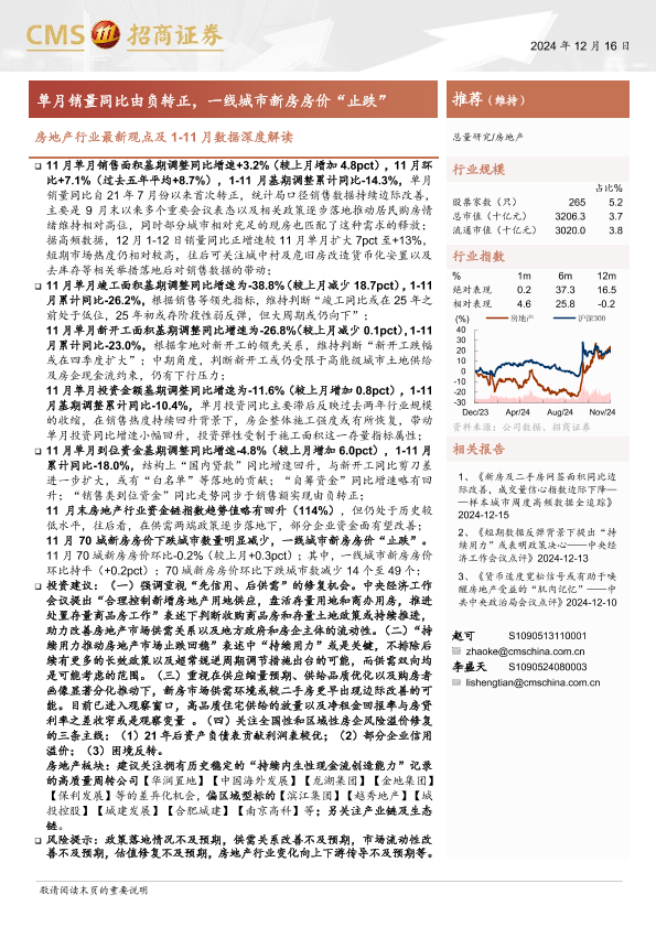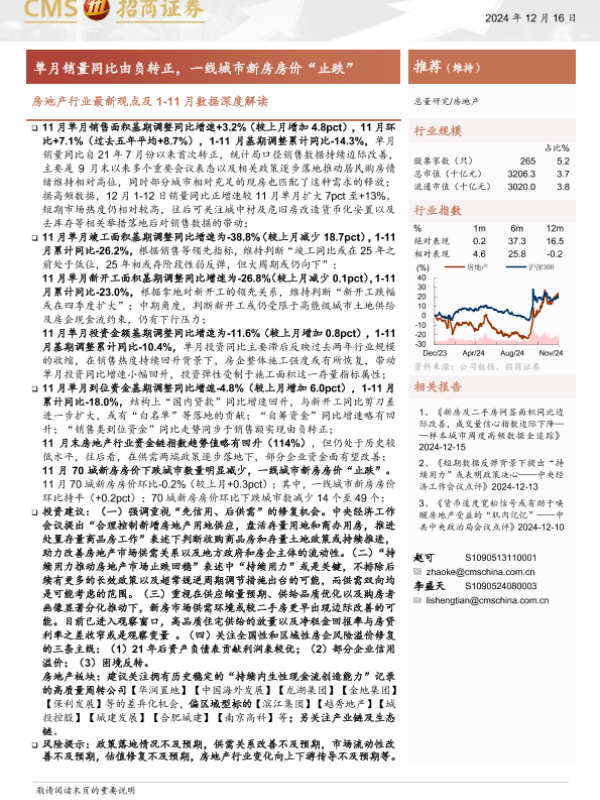 【海通证券】【20241216】房地产行业最新观点及1-11月数据深度解读:单月销量同比由负转正,一线城市新房房价“止跌”-19页