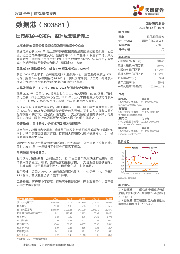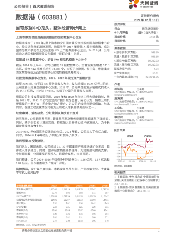 【天风证券】【20241218】数据港(603881)国有数据中心龙头,整体经营稳步向上-19页