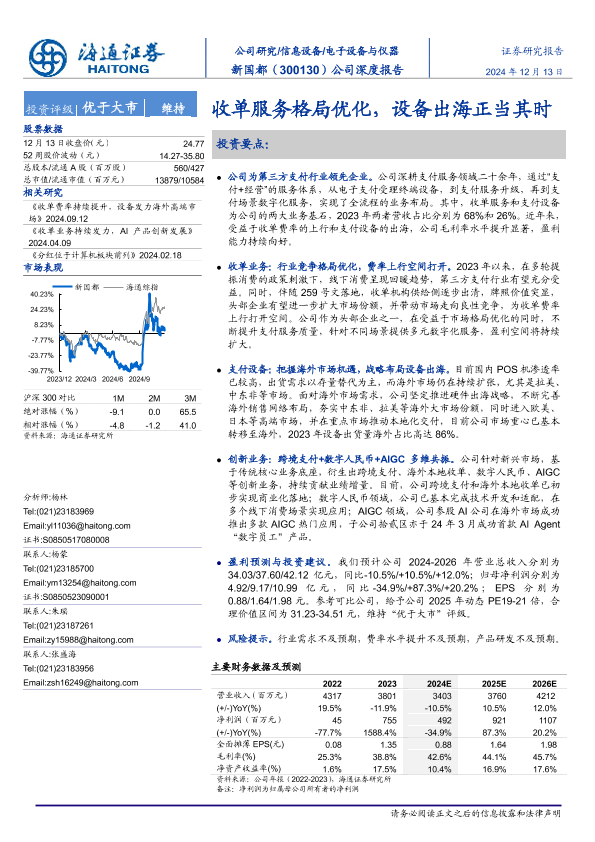【海通证券】【20241213】新国都(300130)公司深度报告:收单服务格局优化,设备出海正当其时-24页