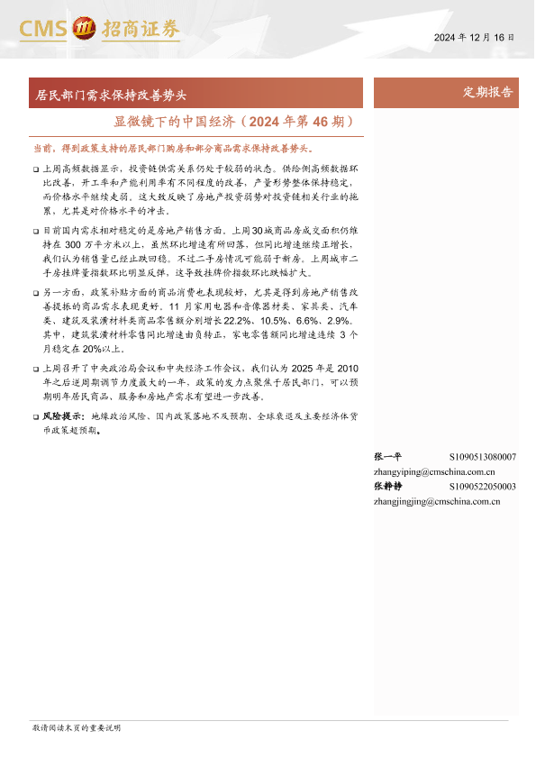 【海通证券】【20241216】显微镜下的中国经济(2024年第46期):居民部门需求保持改善势头-38页