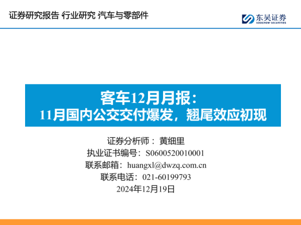 【东吴证券】【20241219】汽车与零部件行业客车12月月报:11月国内公交交付爆发,翘尾效应初现-17页