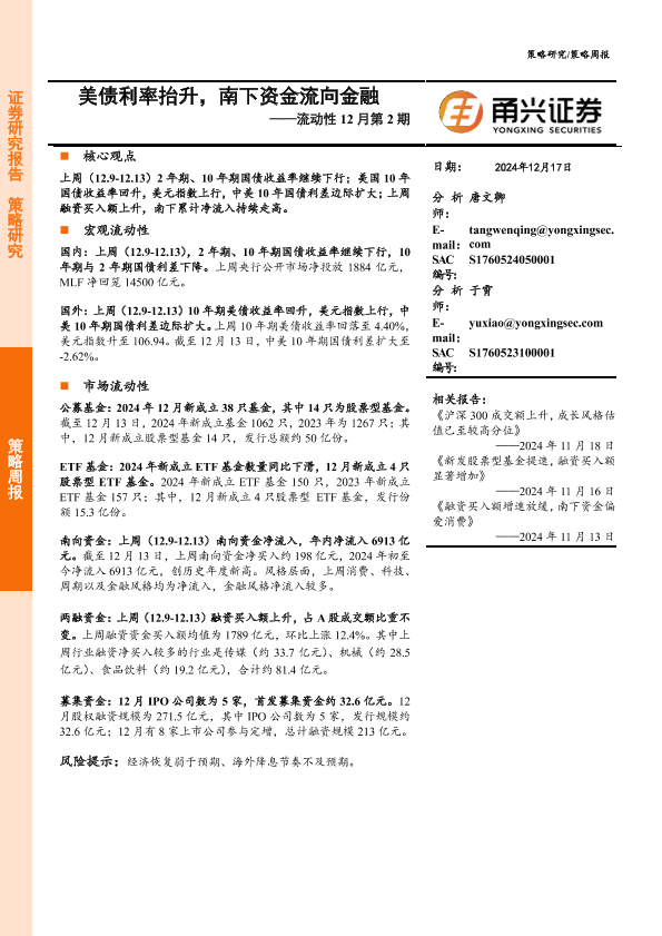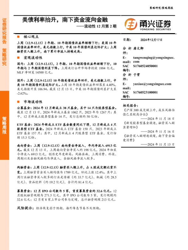【甬兴证券】【20241217】流动性12月第2期:美债利率抬升,南下资金流向金融-10页