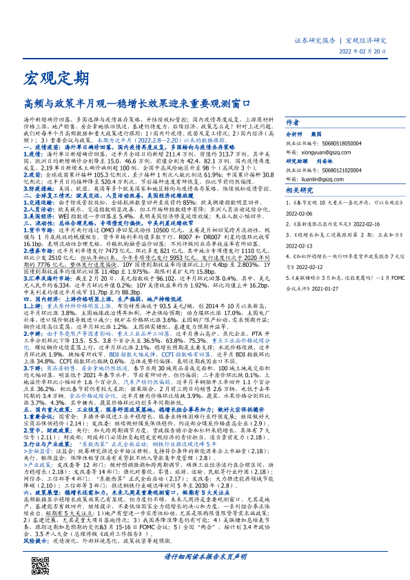 【国盛证券】【20220220】高频与政策半月观:稳增长效果迎来重要观测窗口-17页