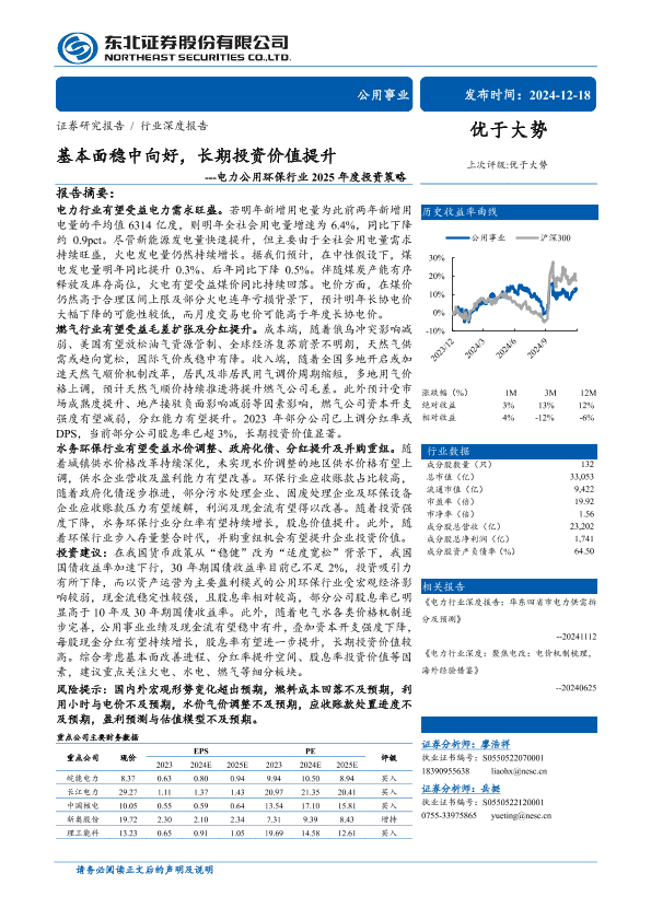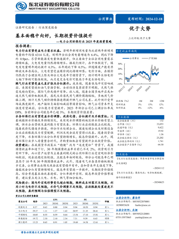【东北证券】【20241218】电力公用环保行业2025年度投资策略:基本面稳中向好,长期投资价值提升-31页