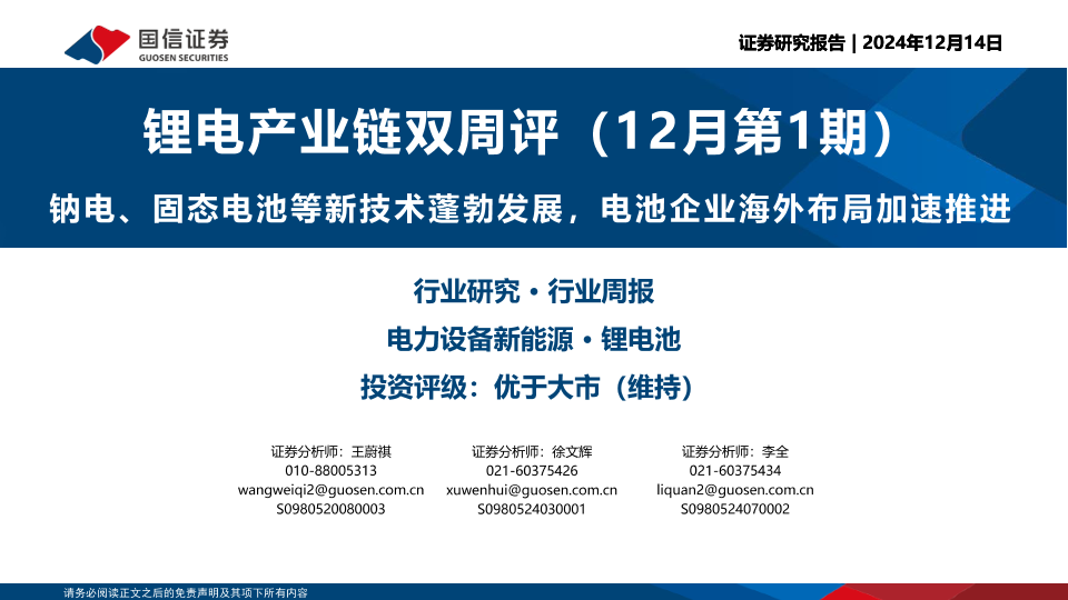 【国信证券】【20241214】电力设备新能源行业锂电产业链双周评(12月第1期)-19页