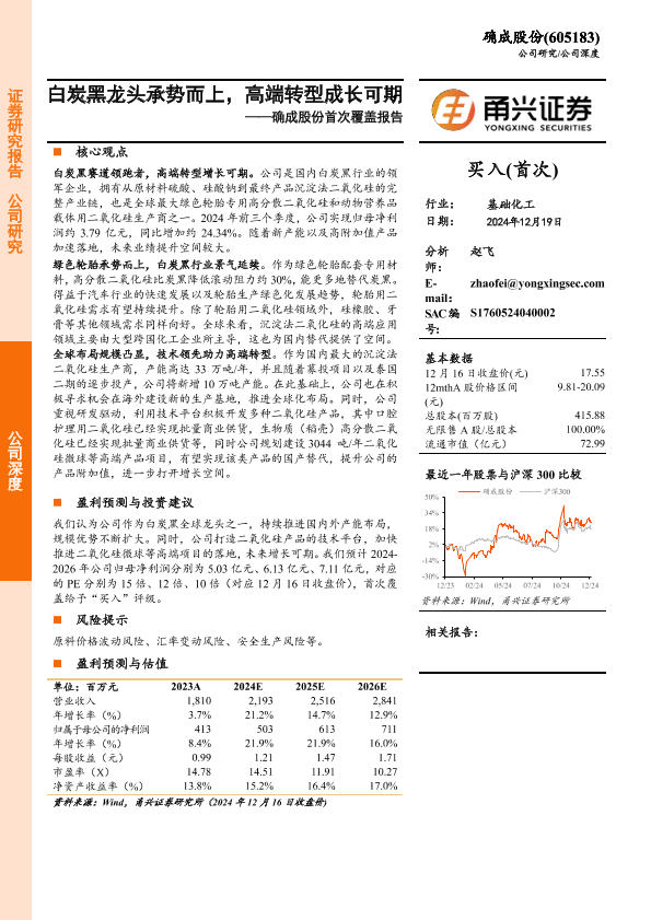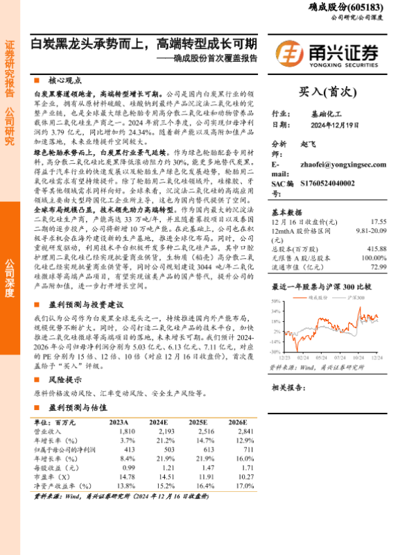 【甬兴证券】【20241219】确成股份(605183)首次覆盖报告:白炭黑龙头承势而上,高端转型成长可期-20页