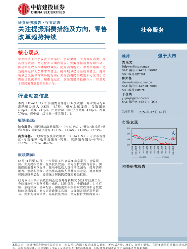 【中信建投证券】【20241216】社会服务行业动态:关注提振消费措施及方向,零售改革趋势持续-25页