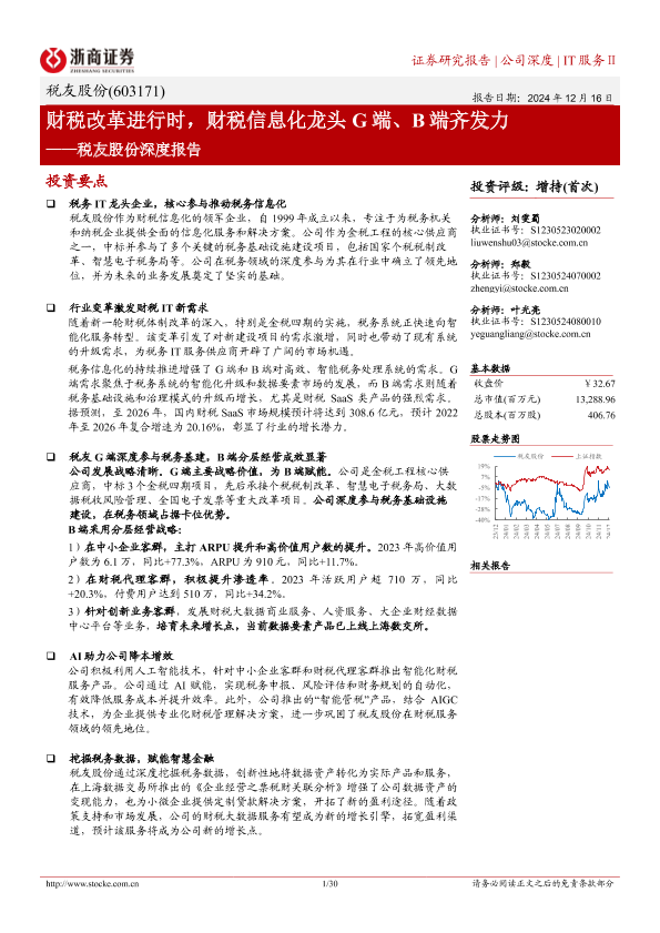【浙商证券】【20241216】税友股份(603171)深度报告:财税改革进行时,财税信息化龙头G端、B端齐发力-30页