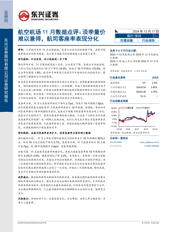 【东兴证券】【20241217】航空机场行业11月数据点评:淡季量价难以兼得,航司客座率表现分化-11页