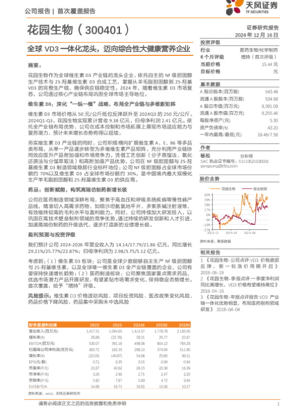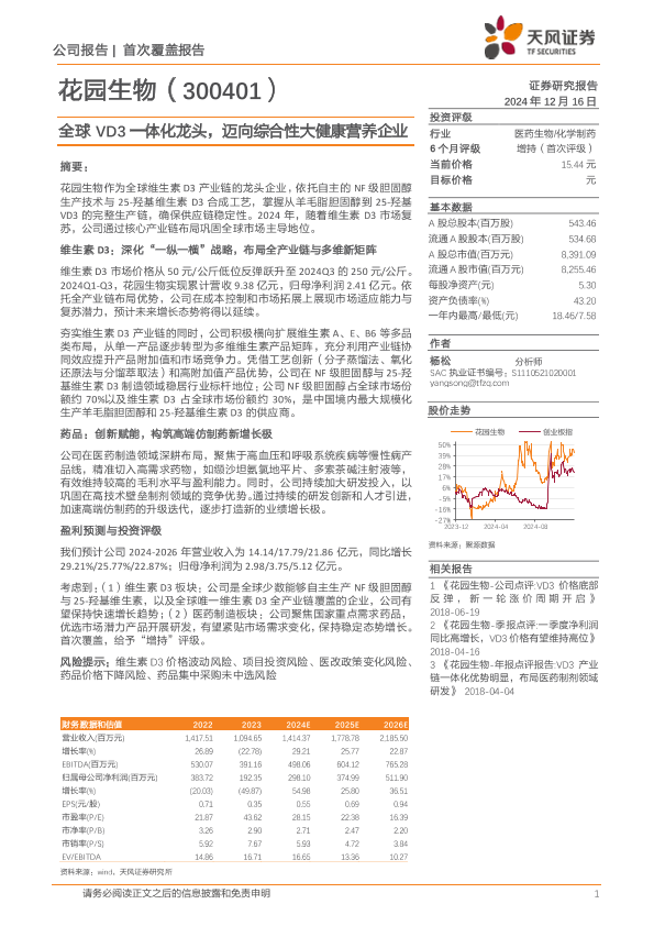 【天风证券】【20241216】花园生物(300401)全球VD3一体化龙头,迈向综合性大健康营养企业-25页