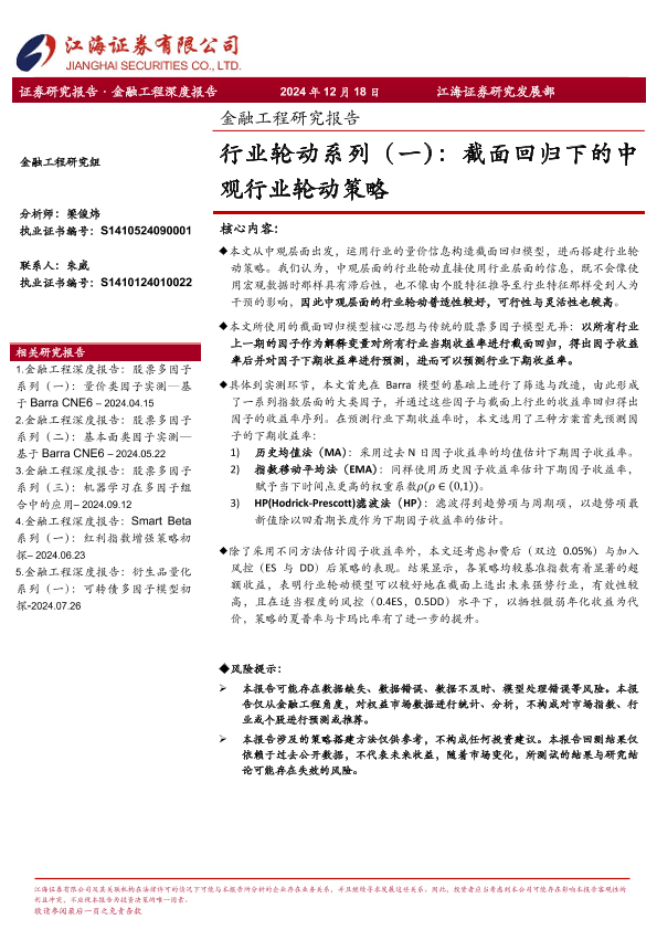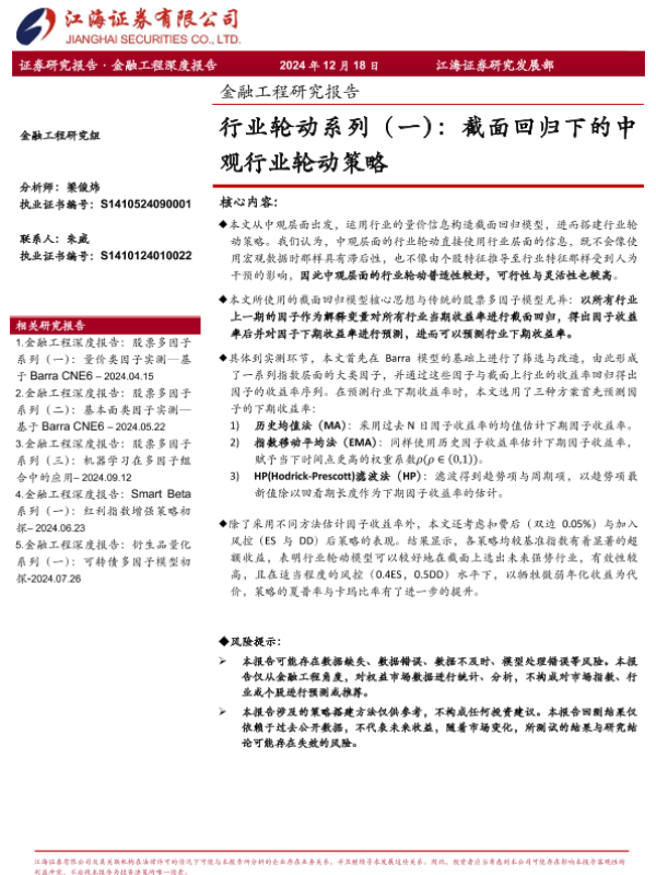 【江海证券】【20241218】行业轮动系列(一):截面回归下的中观行业轮动策略-20页