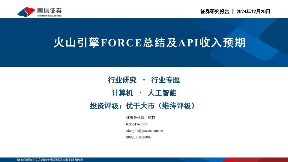 【国信证券】【20241220】计算机行业专题:火山引擎FORCE总结及API收入预期-15页