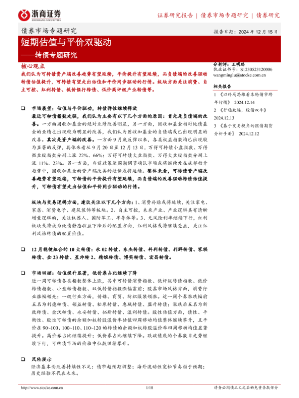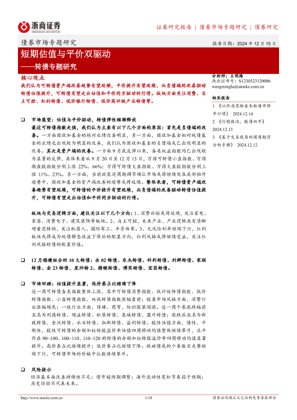 【浙商证券】【20241215】转债专题研究:短期估值与平价双驱动-18页