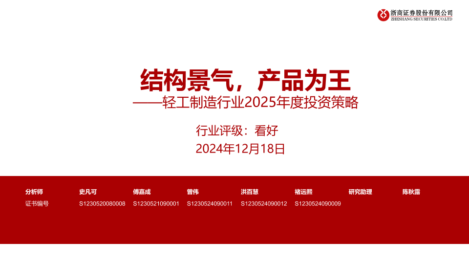 【浙商证券】【20241218】轻工制造行业2025年度投资策略:结构景气,产品为王-47页