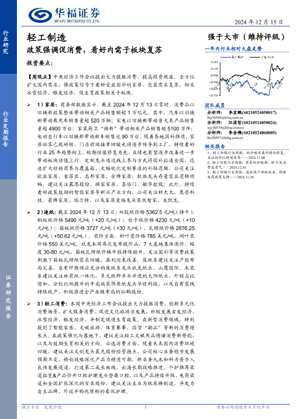 【华福证券】【20241215】轻工制造行业:政策强调促消费,看好内需子板块复苏-20页