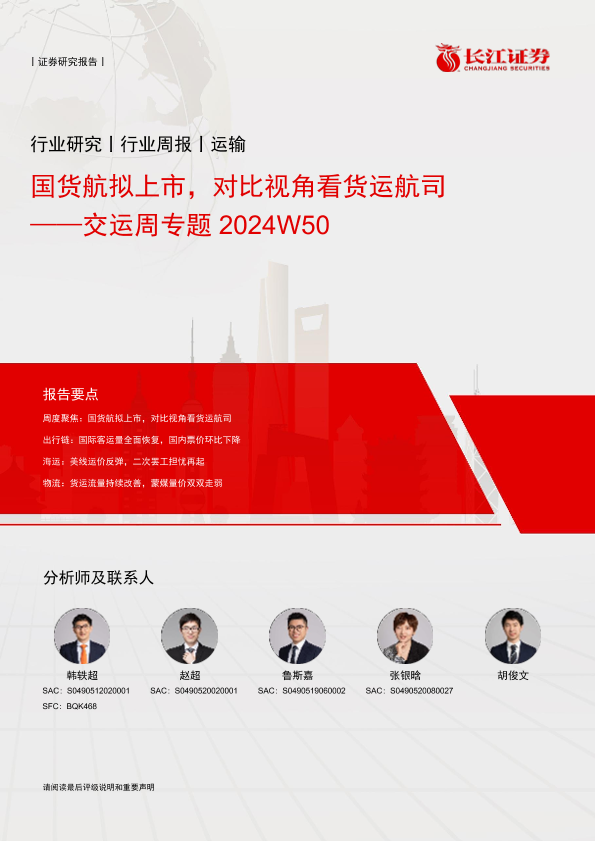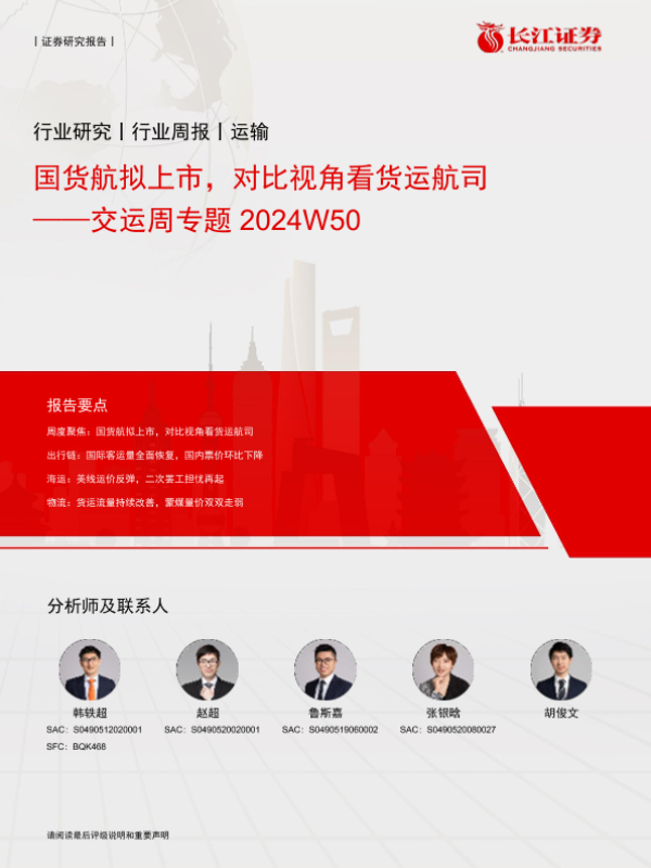 【长江证券】【20241215】运输行业交运周专题2024W50:国货航拟上市,对比视角看货运航司-24页