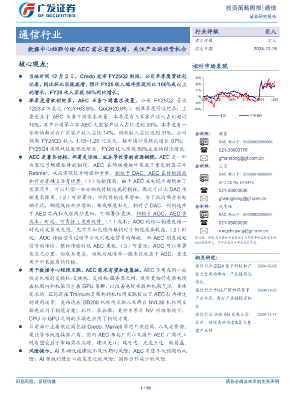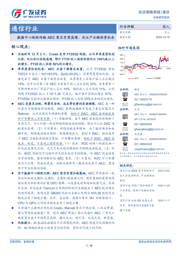 【广发证券】【20241215】通信行业:数据中心短距传输AEC需求有望高增,关注产业链投资机会-16页
