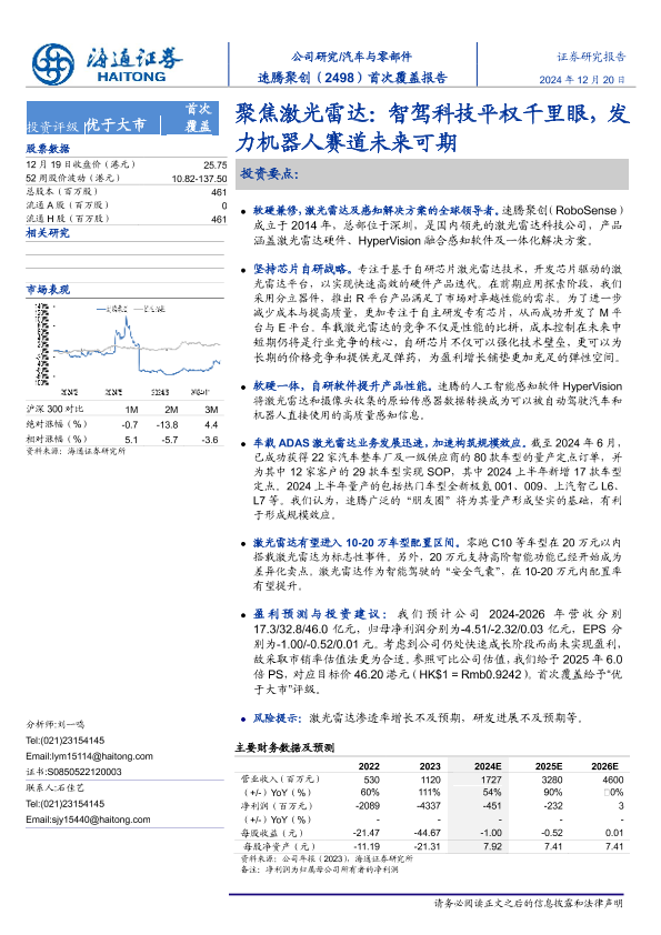 【海通证券】【20241220】速腾聚创(2498.HK)聚焦激光雷达:智驾科技平权千里眼,发力机器人赛道未来可期-18页