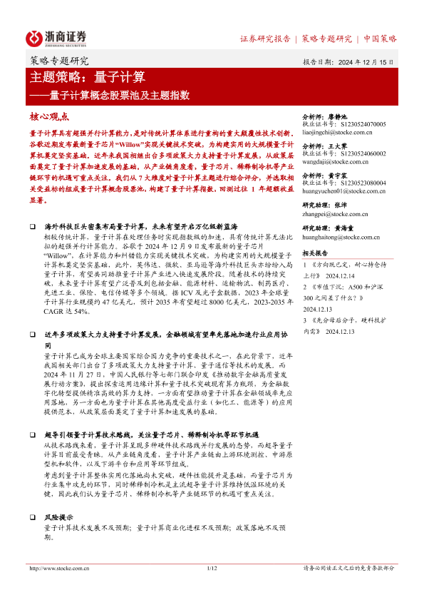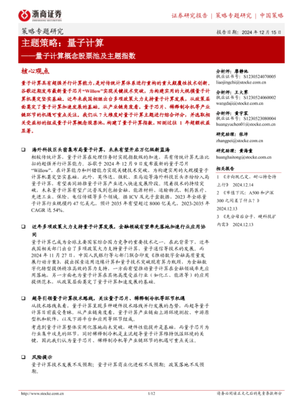 【浙商证券】【20241215】量子计算概念股票池及主题指数:主题策略,量子计算-12页