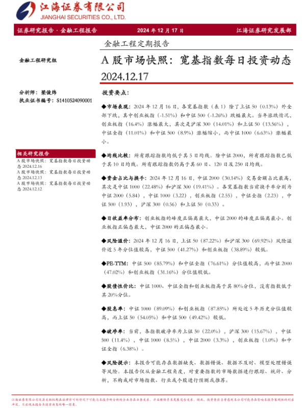 【江海证券】【20241217】金融工程定期报告:A股市场快照,宽基指数每日投资动态-13页