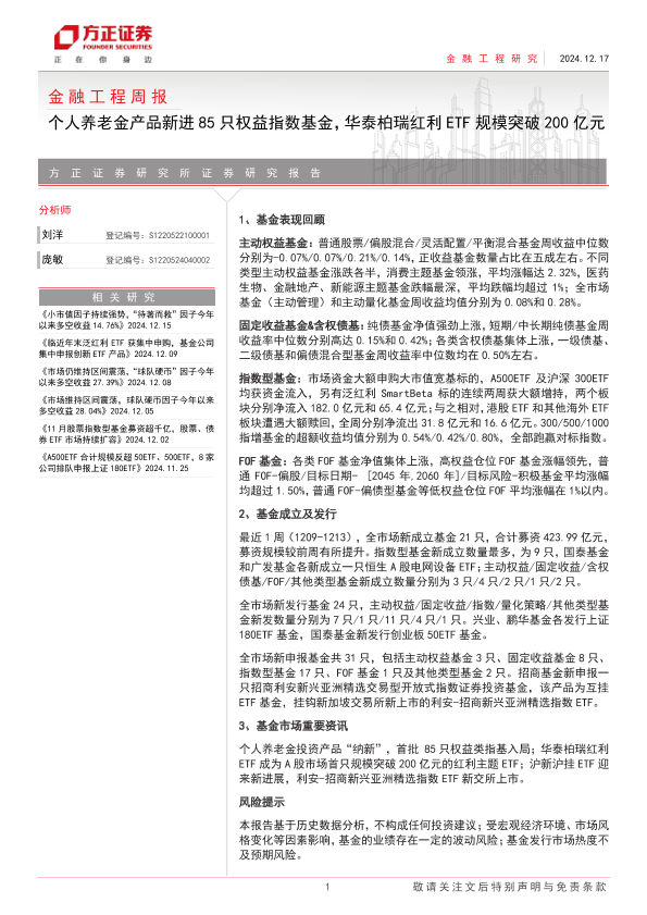 【方正证券】【20241217】金融工程:个人养老金产品新进85只权益指数基金,华泰柏瑞红利ETF规模突破200亿元-17页