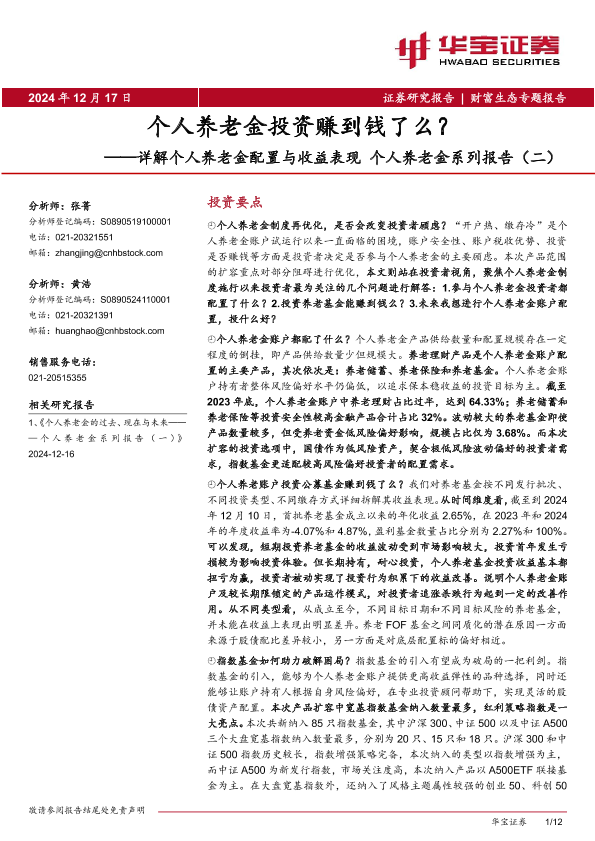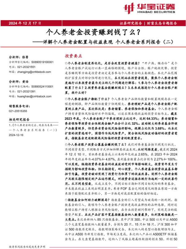 【华宝证券】【20241217】个人养老金投资赚到钱了么?——详解个人养老金配置与收益表现个人养老金系列报告(二)-12页