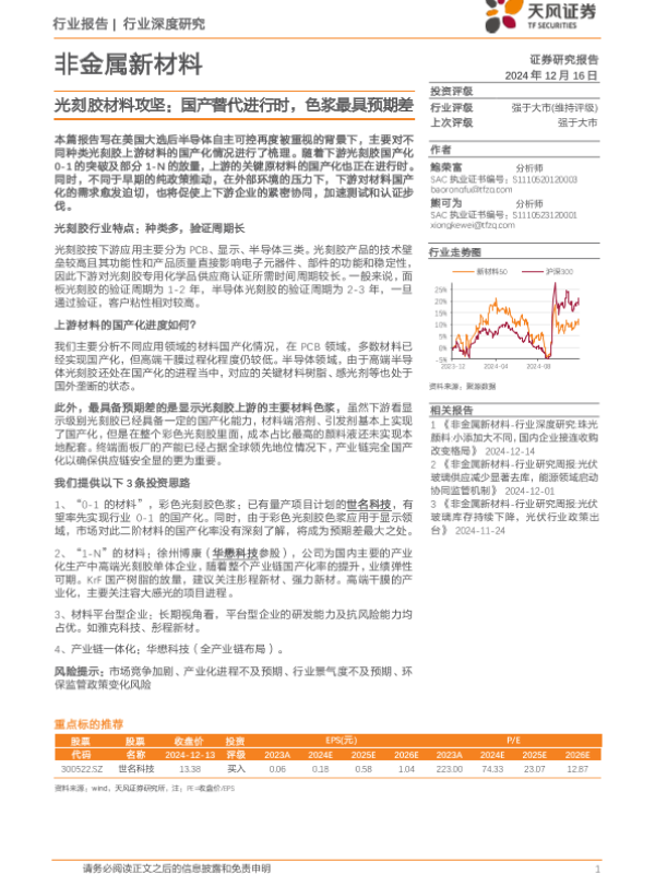 【天风证券】【20241216】非金属新材料行业光刻胶材料攻坚:国产替代进行时,色浆最具预期差-18页