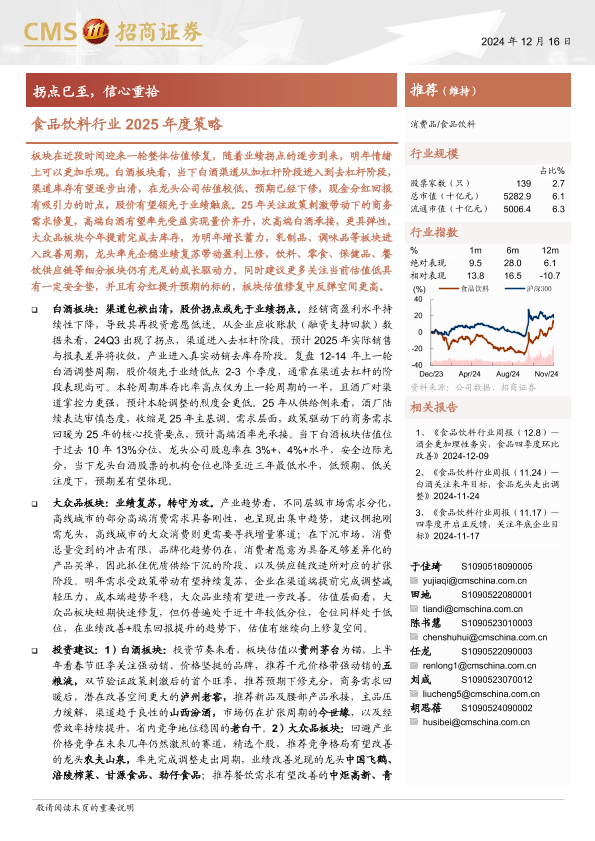 【海通证券】【20241216】食品饮料行业2025年度策略:拐点已至,信心重拾-27页