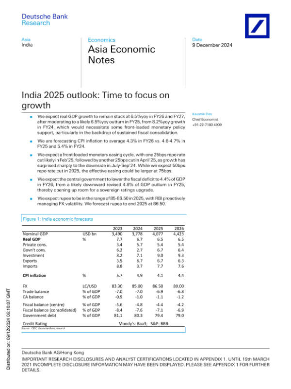 【Deutsche Bank Research】【20241209】India 2025 outlook Time to focus on growth-15页