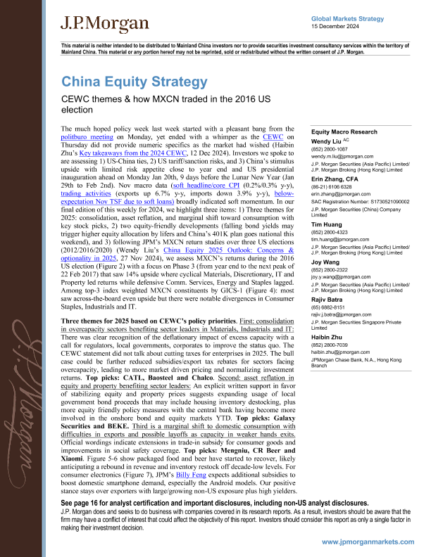 【J.P. Morgan】【20241215】gan-China Equity Strategy CEWC themes & how MXCN traded in the 2016 US election-21页