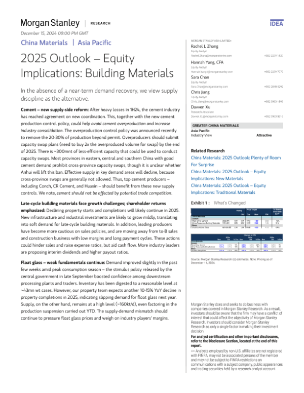 【Morgan Stanley】【2024】China Materials 2025 Outlook – Equity Implications Building Materials-21页