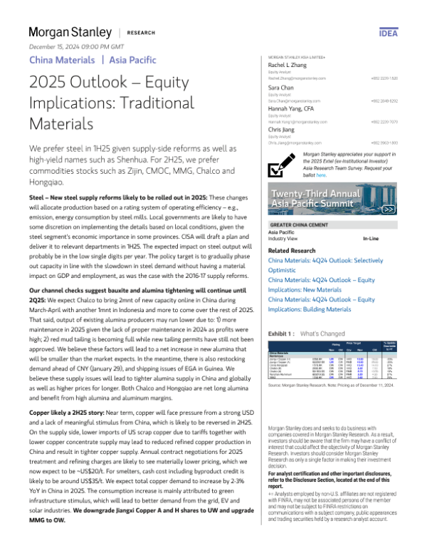 【Morgan Stanley】【2024】nley-China Materials 2025 Outlook – Equity Implications Traditional Materials-38页