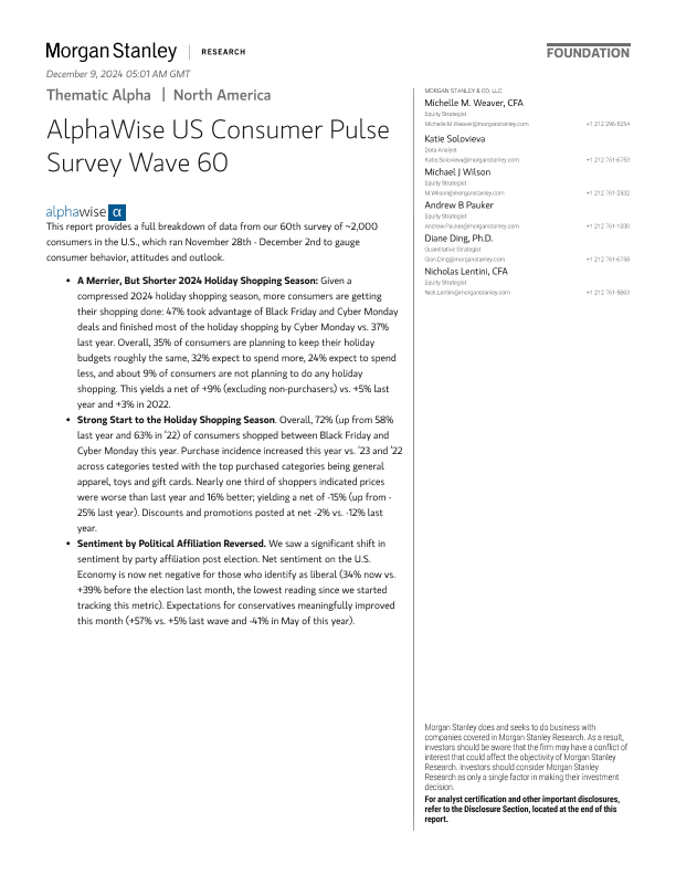 【Morgan Stanley】【202412】Stanley-Thematic Alpha AlphaWise US Consumer Pulse Survey Wave 60-36页