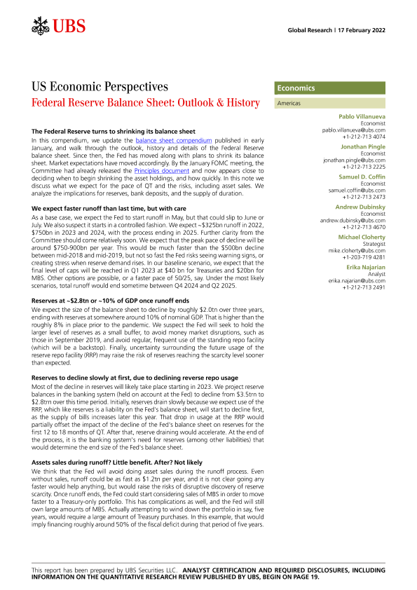 【瑞银】【20220217】瑞银-美股投资策略-美联储资产负债表:前景与历史-22页