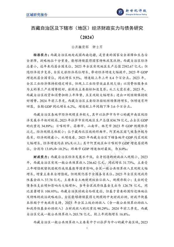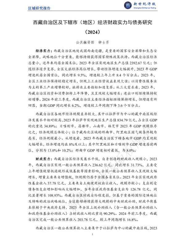 【公共融资部】【2024】西藏自治区及下辖市(地区)经济财政实力与债务研究(2024)-14页