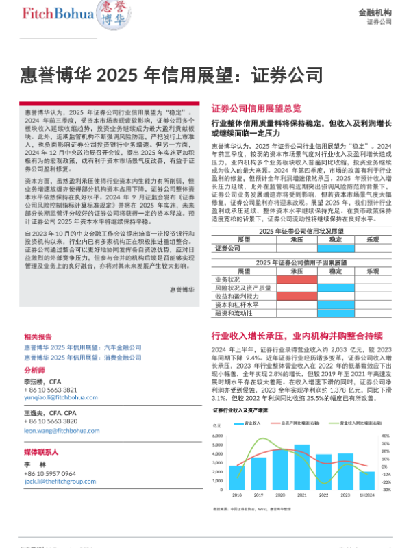 【惠誉博华】【20241216】证券公司2025展望-6页
