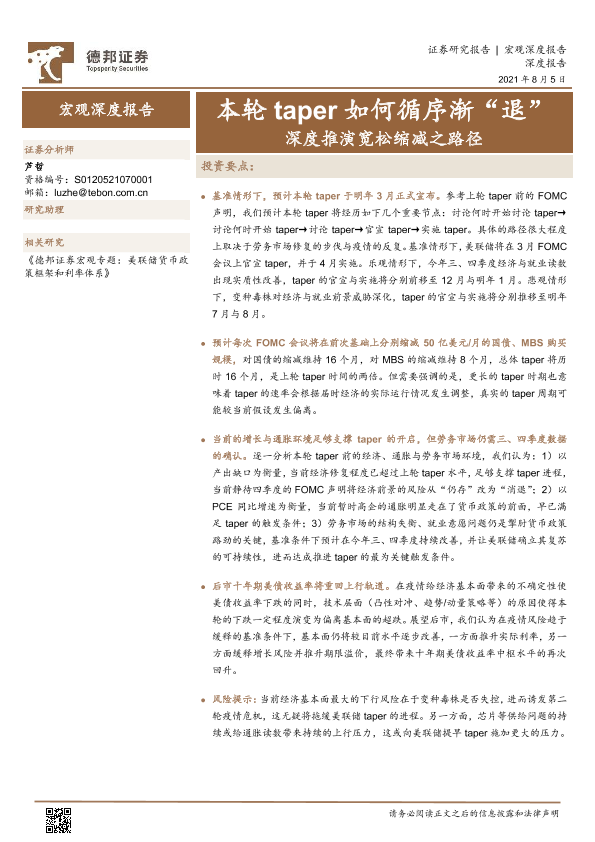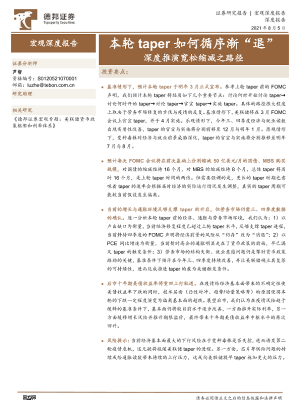 【德邦证券】【20210805】本轮taper如何循序渐“退”,深度推演宽松缩减之路径-20页