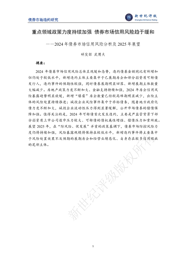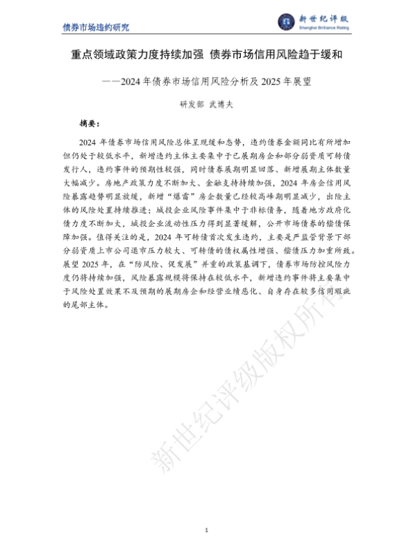 【研发部】【2024】重点领域政策力度持续加强 债券市场信用风险趋于缓和——2024年债券市场信用风险分析及2025年展望-20页