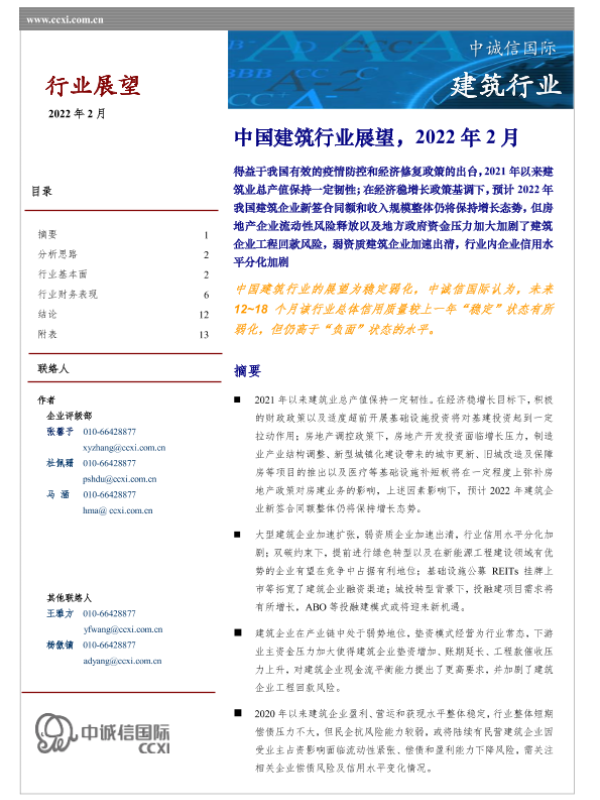 【中诚信国际】【202202】中诚信-中国建筑行业展望(2022年2月)-15页